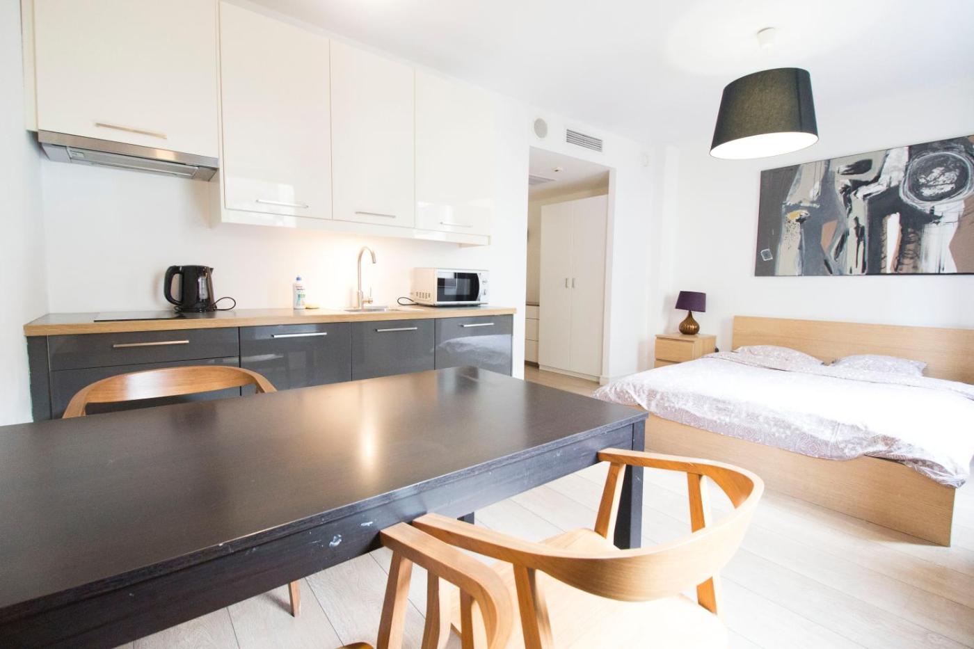 Apartament z 2 sypialniami i widokiem na miasto. Boasting a private entrance, this air-conditioned apartment includes 1 living room, 2 separate bedrooms and 1 bathroom with a shower and a hairdryer. In the well-equipped kitchenette, guests will find a stovetop, a refrigerator, kitchenware and an electric kettle. Featuring a balcony with city views, this apartment also offers a washing machine and a flat-screen TV. The unit has 4 beds. Apartament - 7 osobowy. Powierzchnia pokoju ok.: 58 mkw. ;